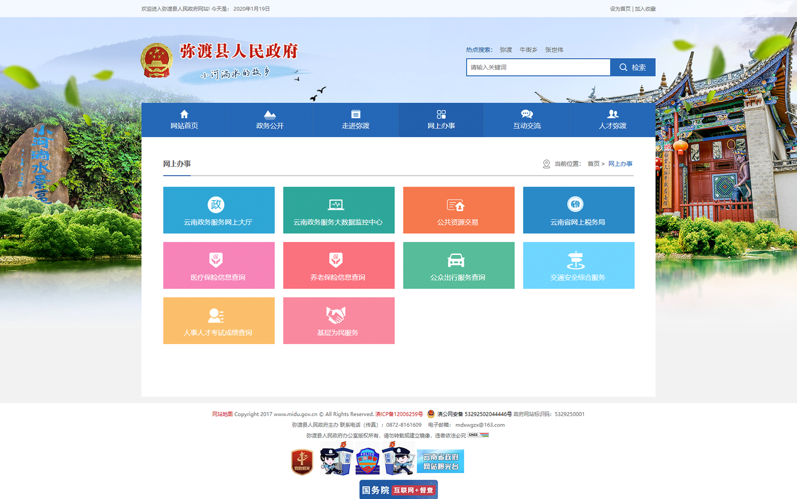 本網(wǎng)站在配色上極其考究,以藍(lán)色為主色調(diào)搭配上國(guó)徽,顯示出政府的威嚴(yán),扁平化的設(shè)計(jì)使整個(gè)界面簡(jiǎn)潔整齊,有效提升用戶(hù)體驗(yàn)網(wǎng)上辦事模塊,極大的提高了民政互動(dòng)的效率。