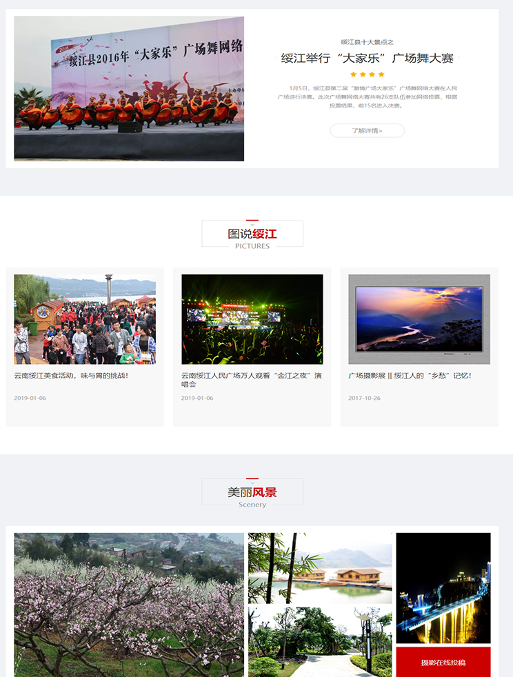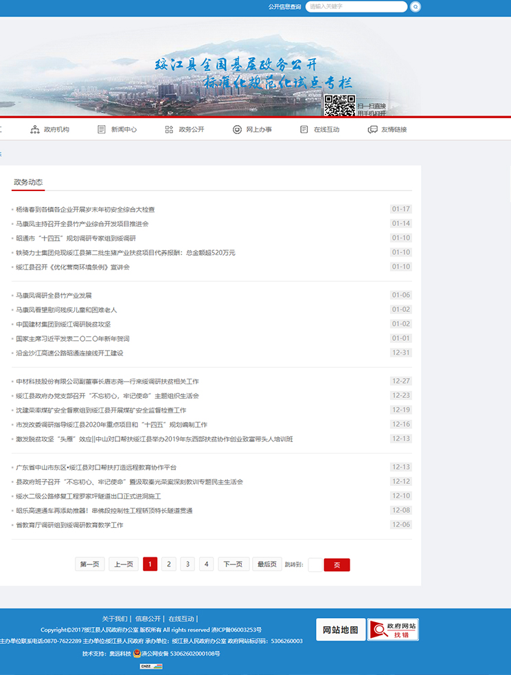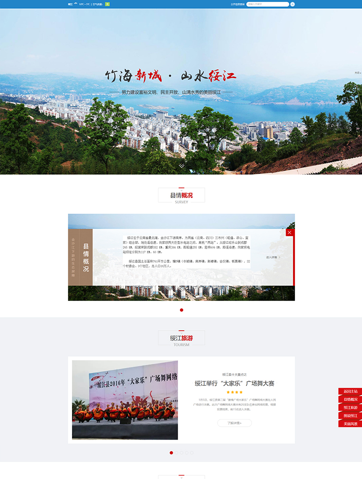 該網(wǎng)站整體以資訊及文案展示為主,圖文并茂展現(xiàn)了動態(tài)資訊及綏江縣情況。色調(diào)以藍(lán)色為主,凸顯政府的公平公正,紅色為輔色,以凸顯政府的神圣及莊嚴(yán)。網(wǎng)站設(shè)計內(nèi)容布局、形式劃分清晰,引導(dǎo)用戶最快找到自己想了解的信息,層次分明,頁面視覺清爽,并沒有令人眼花繚亂的廣告。內(nèi)容和展示形式結(jié)合恰當(dāng),整體瀏覽體驗響應(yīng)速度快。